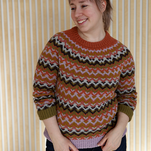 This sweater is worked top-down seamlessly. The sweater has double folded neckline, cuffs and hem, a round yoke and an all-over colorwork pattern that lets you play with your favourite colours. You can use as many as you like or make a more subtle version with just three (you will need at least three to make the colorwork pattern work).