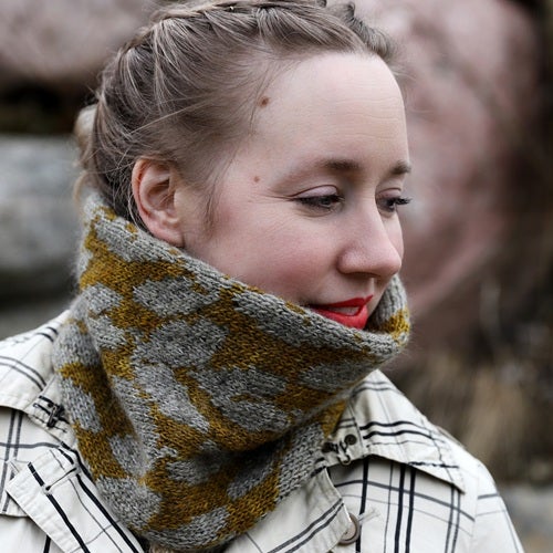This cowl is worked seamlessly in the round. It starts with a provisional cast-on. Then you knit a long tube and finish it by grafting the live stitches together with the cast-on. The pattern includes two lengths, but you can work as many repeats of the pattern as you like. The cowl uses a sport weight wool yarn for the main color and a sport weight wool yarn held together with lace weight silk mohair for contrast color to give it a special feel and look. You can work the cowl with a long circular needle using the magic loop technique or with a shorter circular needle or dpns.