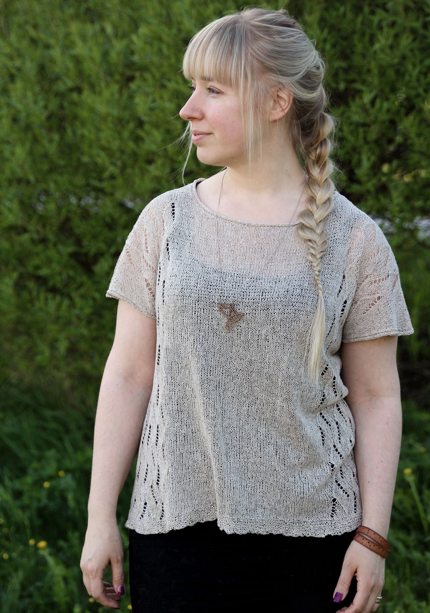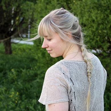 Teas is a boxy summer top with dropped shoulders and cap sleeves. It has a delicate lace on the sides. This light as air silk top will keep your shoulders covered but still keep you cool.